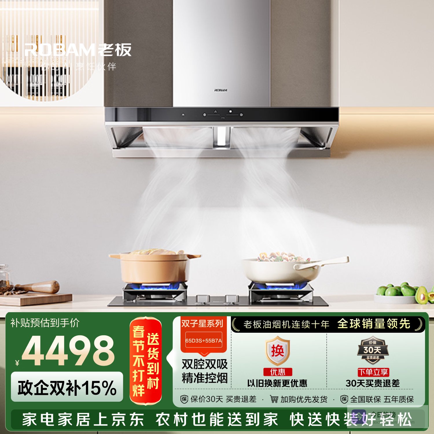 推荐第8款:老板(Robam)65D3S双子星抽油烟机套装