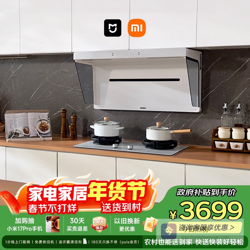 米家小米抽吸油烟机净烟机S1升白色S2以旧换新大吸力一级能效上门安装天然气【定时燃气灶套装】MJ05A¥