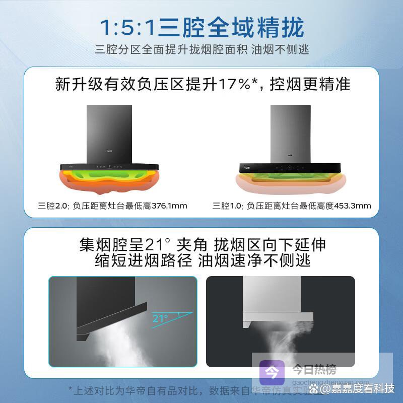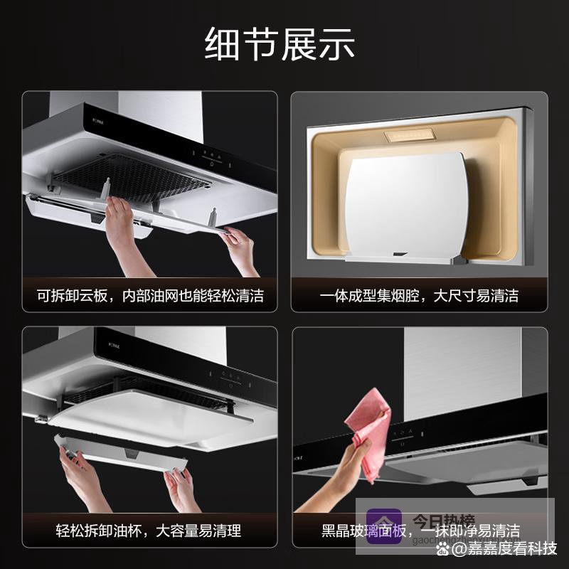 华帝产品的最大亮点在于其创新的三吸式结构或侧顶双吸设计,能够从多个角度同步抓取油烟,效率极高。其自研的直流变频电机响应迅速,支持智能挥手感应和烟灶联动,极大提升了下厨的仪式感。华帝对产品工艺的追求也体现在其易维护的黑晶面板和长效滤网上,这种在颜值与实力之间寻找完美平衡的产品思路,使其成为了2026年厨电市场的热门标杆。