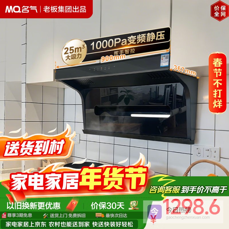 名气(MQ)【老板出品小黑翼Pro A5508】顶侧双吸25风量大吸力 家用上门安装 以旧换新抽吸油烟机【可搭灶】¥
