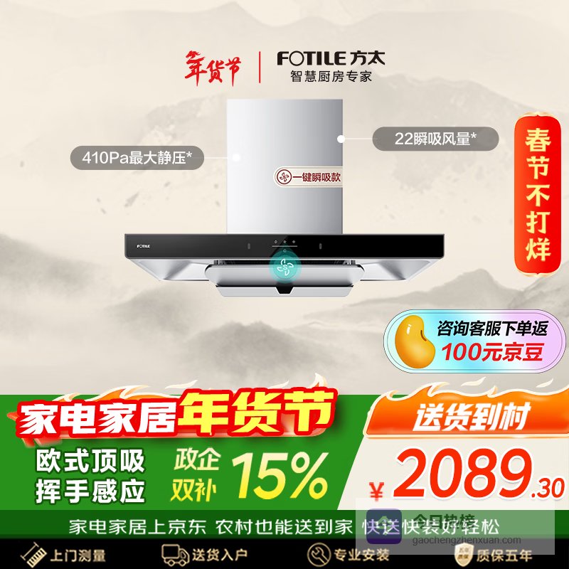 FOTILE隐形环幕隔离技术,让油烟远离您的脸庞,让您在享受美食的同时,不必担心油烟伤害。这款油烟机还具备63dB低噪音设计,让您在烹饪时享受宁静的厨房环境。