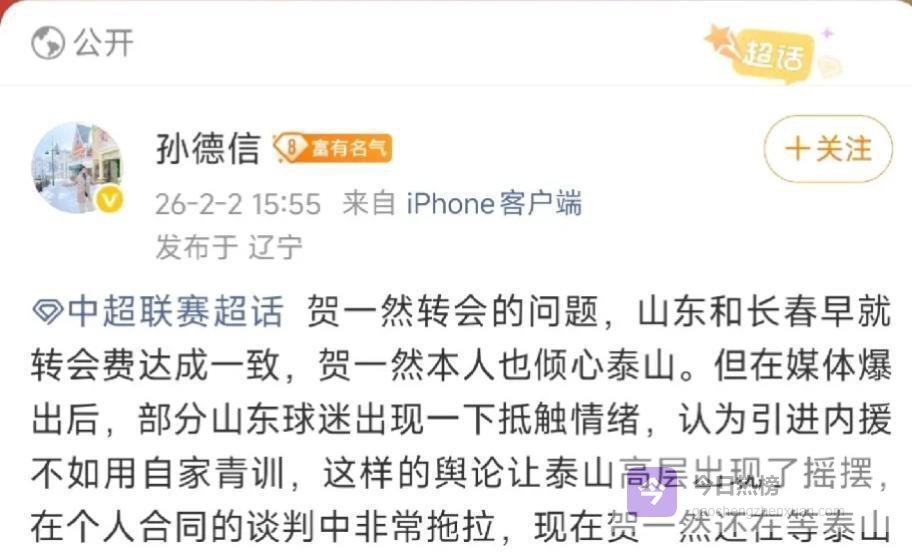 更深层矛盾在于引援决策的透明度。 2025年,泰山俱乐部曾因漠视球迷反馈导致多个球迷会抵制主场赛事,关系一度紧张。 此次面对贺一然转会,管理层的“拖延战术”被质疑是“将球迷当作决策失误的挡箭牌”。