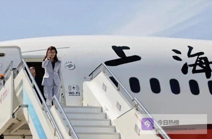 第一天下午亮相上海虹桥机场,她身着浅冰蓝西服套装,内搭深色打底衫,长发飘飘,轻松随性,款款走下飞机,游子“回家”的状态感满满。