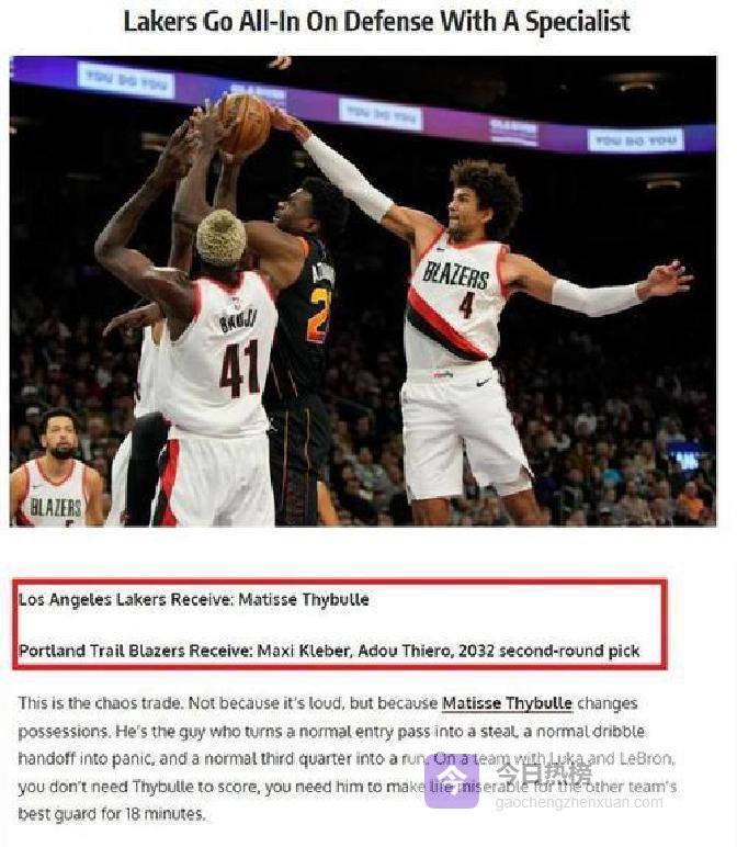 那问题就留给你们了:如果这笔用蒂耶罗、克勒贝尔加一个次轮去换塞布尔的交易真落实,你觉得湖人外线问题能好转多少?你更愿意赌新秀的潜力,还是更看重塞布尔这种即战力防守?评论区说说你心里的答案。