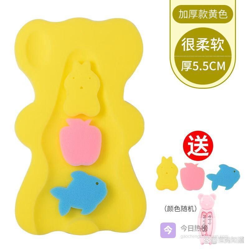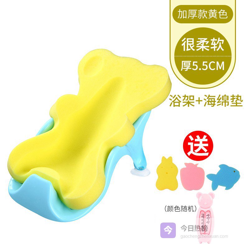 【品牌专营】贝昔婴儿洗澡网海绵垫宝宝洗澡网兜新生儿浴盆浴架通用浴床游泳馆浴垫黄色【5.5cm升级款】¥