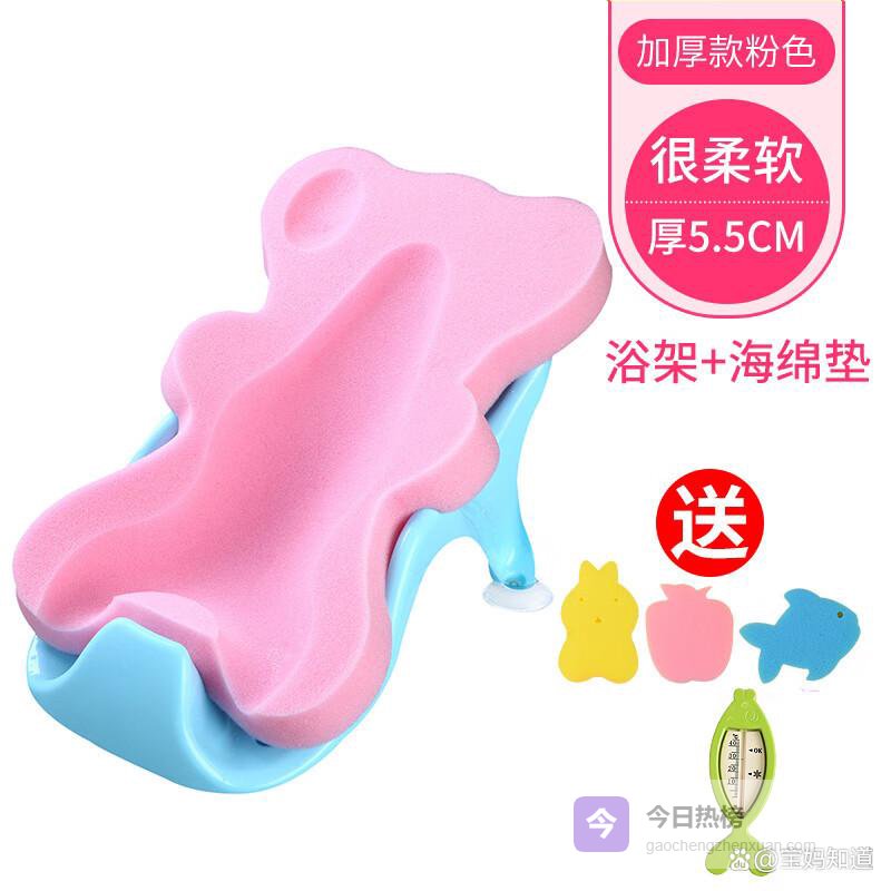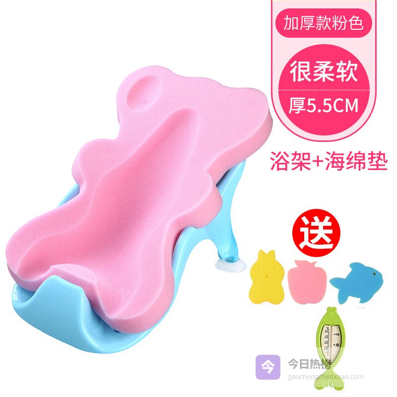【品牌专营】贝昔婴儿洗澡海绵垫宝宝洗澡网兜防滑神器可坐躺新生儿沐浴盆浴架通用粉色5.5cm含浴架【0¥