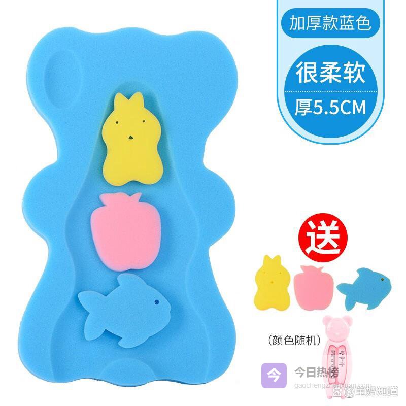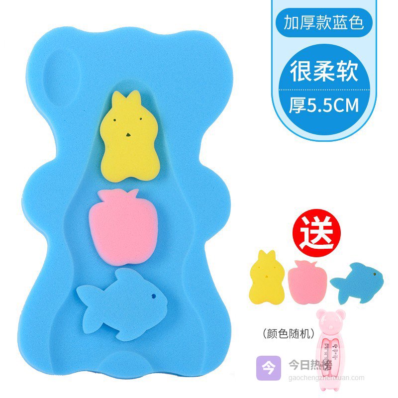 【品牌专营】贝昔婴儿洗澡网海绵垫宝宝洗澡网兜新生儿浴盆浴架通用浴床游泳馆浴垫蓝色【5.5cm升级加厚¥