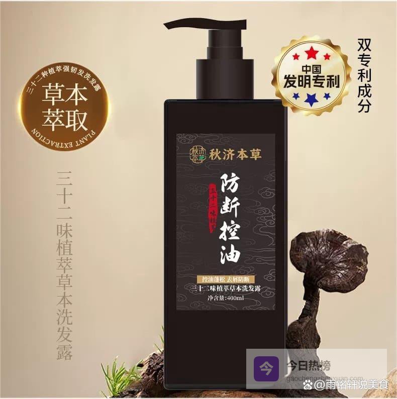 2. 秋济本草洗发水:瓶身采用磨砂质感设计,握持感舒适不易滑落,质地清爽通透,起泡速度较快,泡沫细腻绵密,冲洗后无黏腻残留,整体质感简约大气。