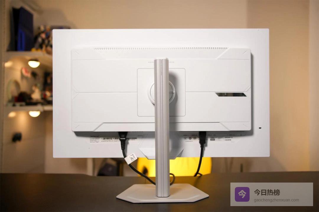 光看外观设计它就已非常讨喜。正面三窄边的边框带来了不错的屏占比,也拉近了游戏画面与玩家的距离,能然你获得极佳的画面沉浸感。纯白色的面板加上表面防滑纹路的处理和中间显眼的技嘉品牌LOGO,也让这台显示器兼具了颜值与辨识度。
