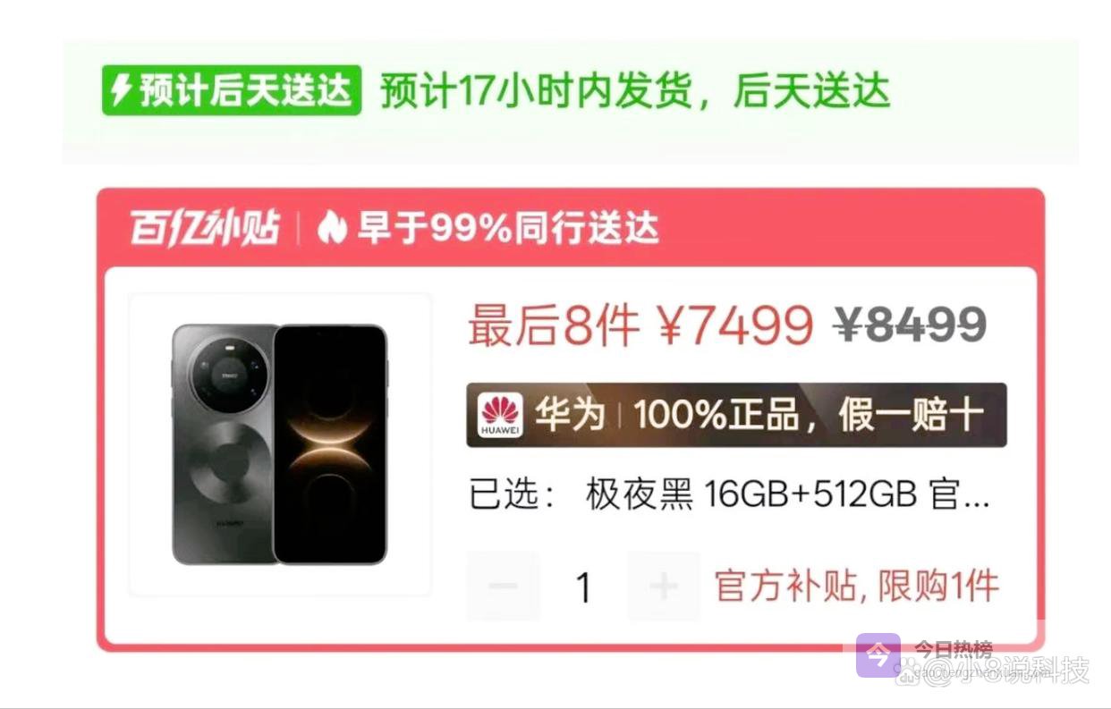 难道华为也扛不住目前高端手机市场的内卷压力了,刚刚发布没多久的Mate80 Pro Max风驰版竟然在第三方渠道出现了直接暴跌一千元的疯狂跳水行情?