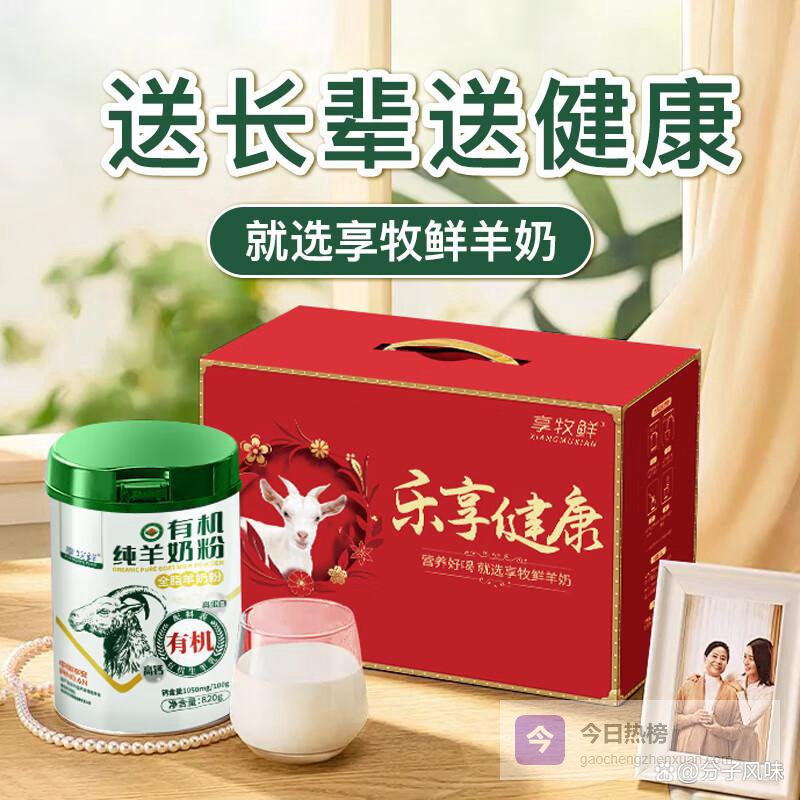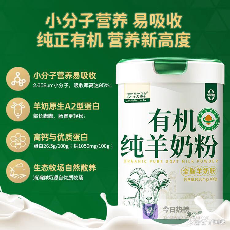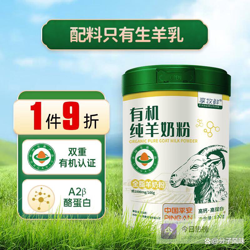 推荐理由:有机羊奶粉采用自然养殖,配方特别适合中老年人和儿童,提供优质营养,健康成长的理想选择。