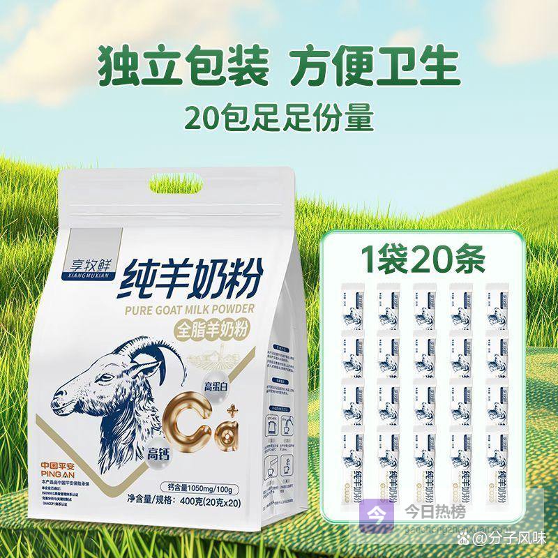 推荐理由:这款全脂羊奶粉富含天然营养,口感丰富,健康美味,让您在日常生活中轻松补充能量,适合家中每个成员。