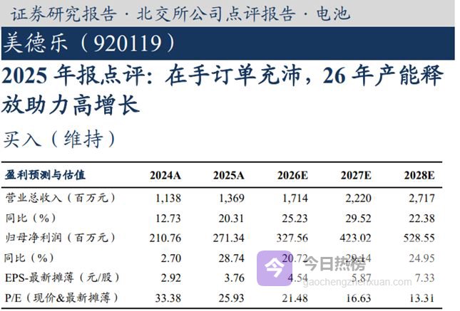 2025年,美德乐以全面优异的财务表现,印证智能输送龙头的核心竞争力;以上市首份丰厚分红,树立北交所优质企业价值标杆,东吴证券最新年报点评维持买入评级。站在智能制造与新能源产业发展的黄金赛道,面对行业旺盛、强劲的市场需求,充足的订单,美德乐表示公司将全力加快实施募投项目,完善全国产能布局,优化供应链体系,深耕核心优势赛道,筑牢资源与规模壁垒。