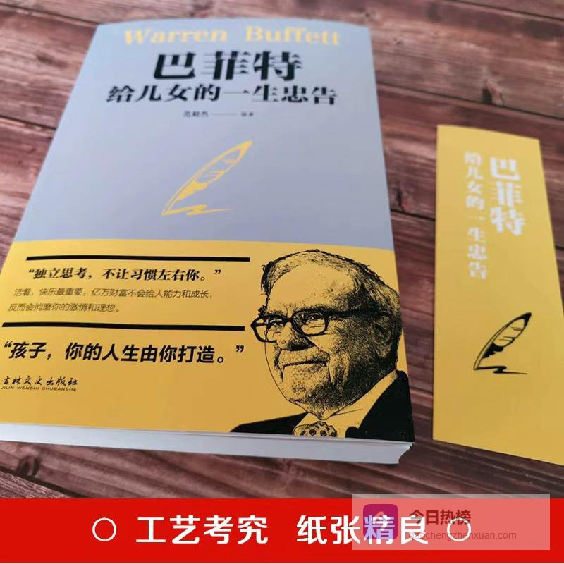 他将自己一生最重要、最珍贵的财富留给了子女们,并汇集在了《巴菲特给儿女的一生忠告》这本书中,除了投资理念,书中的赚钱思维更是胜过亿万财富。