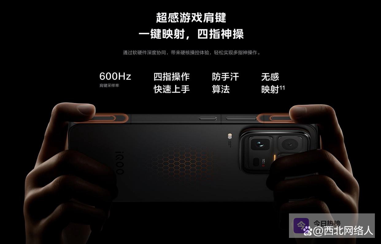 iQOO 15:除了实体肩键,它还首发了屏下双控压感技术,结合“超感分区触控”功能,能够智能识别握持姿势。比如在《王者荣耀》里,系统能精准判断你的走位意图,杜绝了断触和卡顿,甚至提升了约15%的射击命中率。