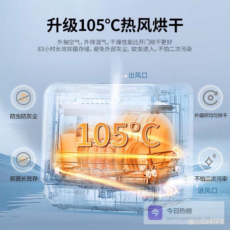 华帝台式洗碗机在清洁效果上表现卓越,配备5套餐具容量,非常适合日常家庭使用,能够轻松应对各种洗涤需求。此外,升级的105度热风烘干技术使餐具在清洗后迅速干燥,不仅让餐具使用更卫生,也有效避免细菌滋生。
