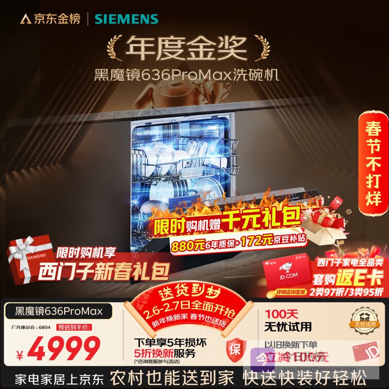 【京东自营】西门子黑魔镜636ProMax150升以上容积全面升级双一级认证超省水省电AI智能洗嵌入¥