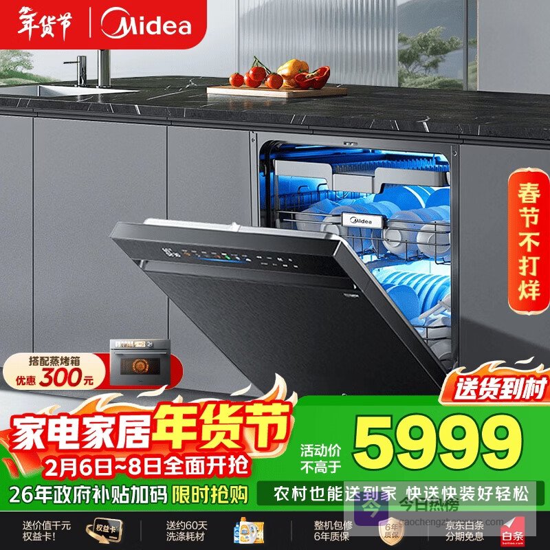 【京东自营】美的【万向X6SMax星河版】洗碗机嵌入式150升以上105℃热风烘干母婴消毒一键洗烘蒸¥