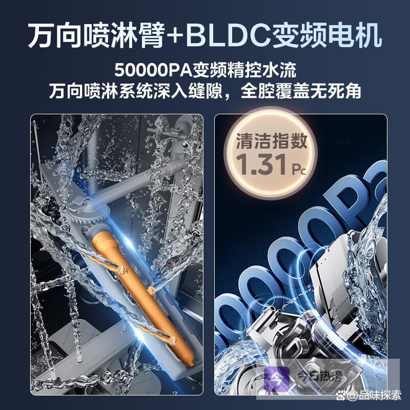 此外,这款洗碗机独特的自动开门烘干设计非常贴心,当内腔温度达到理想值时,门体会自动开启,快速释放水蒸气,确保餐具干爽。其变频BLDC电机使得喷淋压力能够适应不同的清洗需求,既能够高效清洁,又保护您的精致餐具不受损伤。