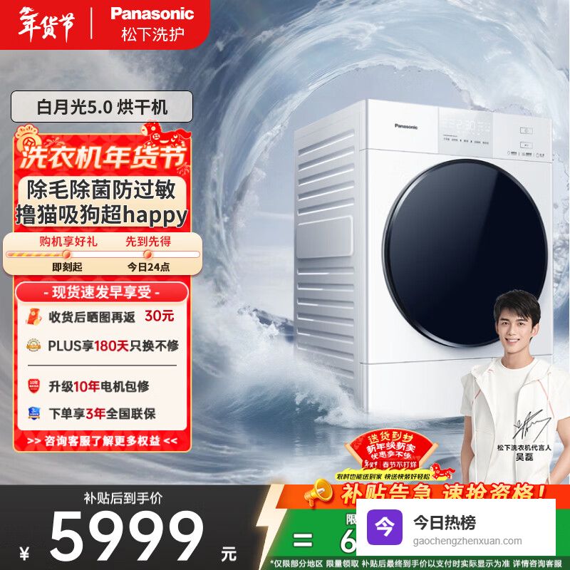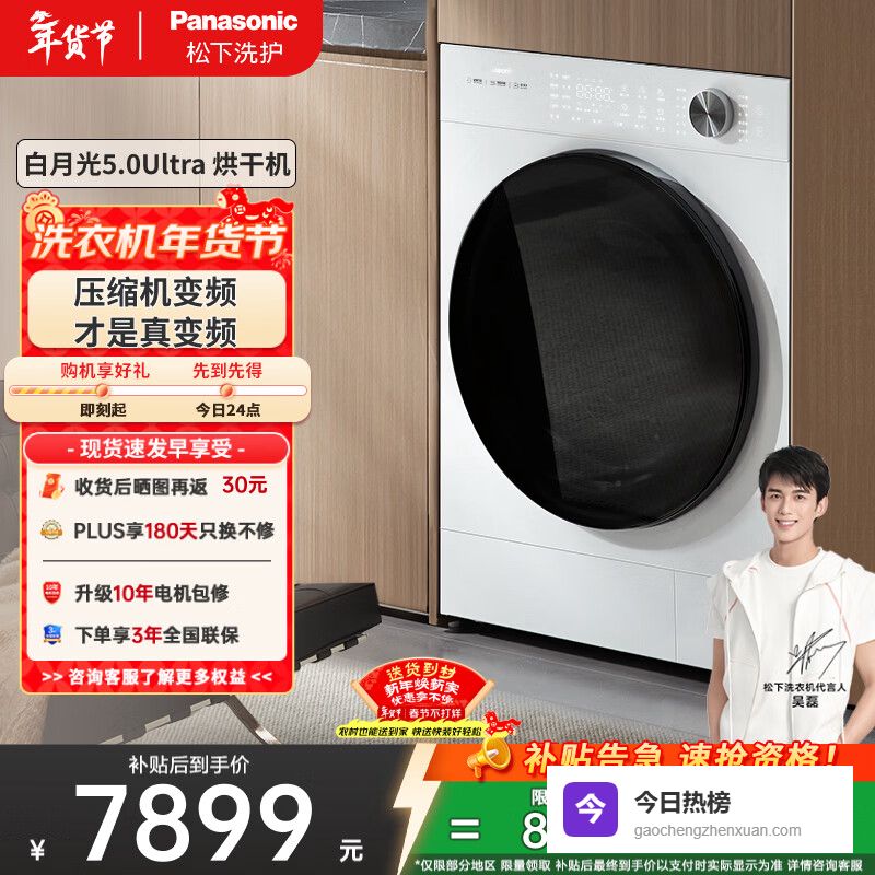 【京东自营】松下白月光5.0Ultra热泵烘干机10KG家用变频干衣机烘护不伤衣专业宠物除毛烘NH-¥