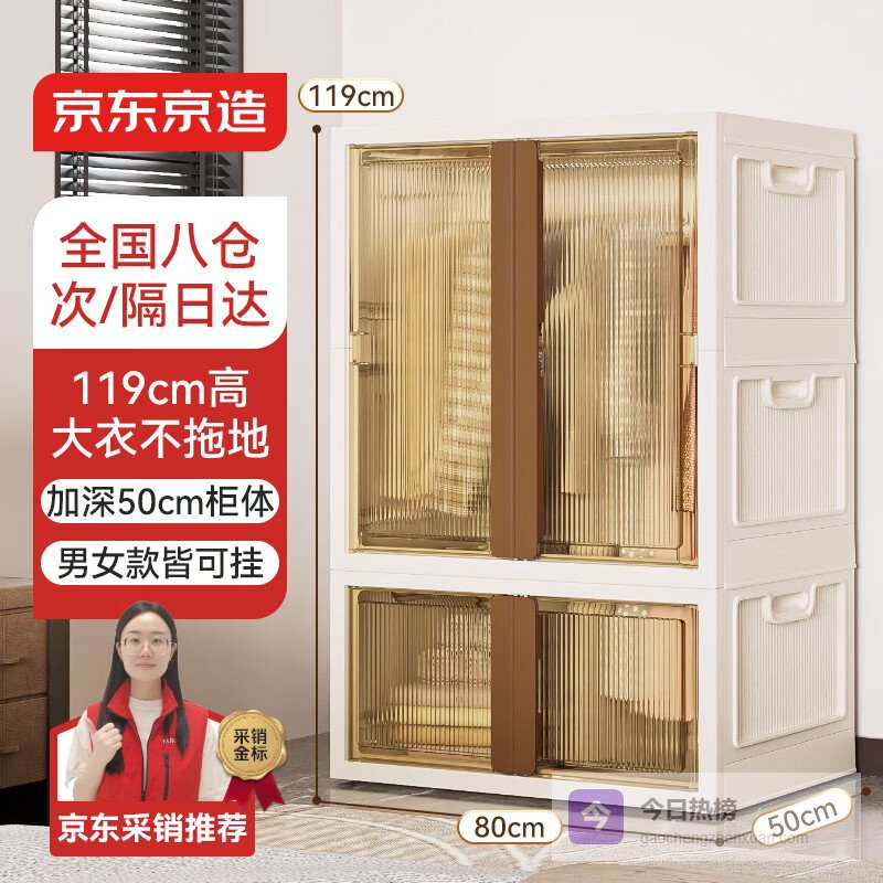 【京东自营】京东京造意式可可收纳柜免安装储物柜叠加式衣柜【共用顶盖】64面宽3层¥
