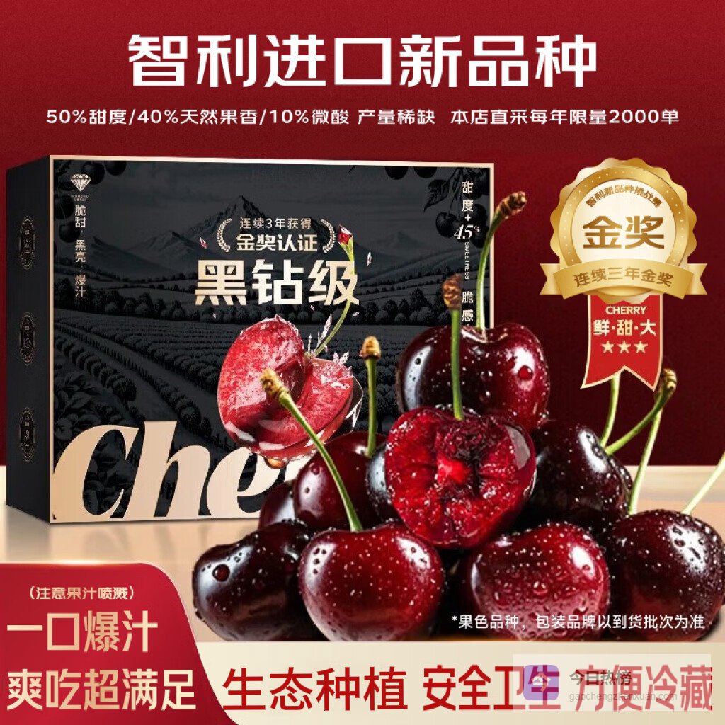 核心优势:✅ 超高性价比:同等品质下价格比同类产品低15%-20%,适合大家庭囤货。✅ 稳定供应:与智利顶级果园直接合作,春节前后不断货,解决年货采购焦虑。✅ 健康之选:检测显示其花青素含量比普通车厘子高出30%,营养价值更胜一筹。