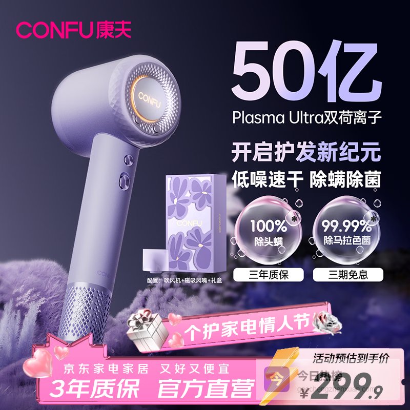 康夫(CONFU)【情人节礼物】高速护发吹风机50亿等离子家用大功率速干新年礼物送女友电吹风筒F9Pro尤莱特紫¥