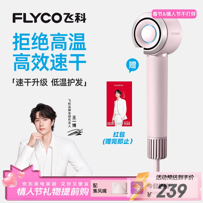 飞科(FLYCO)【王一博推荐】高速电吹风机情人节礼物家用便携出行必备速干负离子大风力护发吹风筒FH6371钻石粉¥