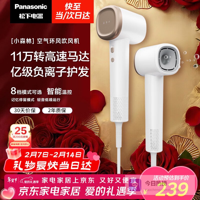 松下(Panasonic)高速护发吹风机速干负离子电吹风家用不伤发送女友新年情人节礼物年会奖品小森林陶瓷白EH-NE6L¥