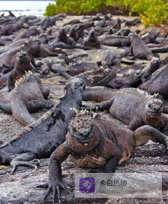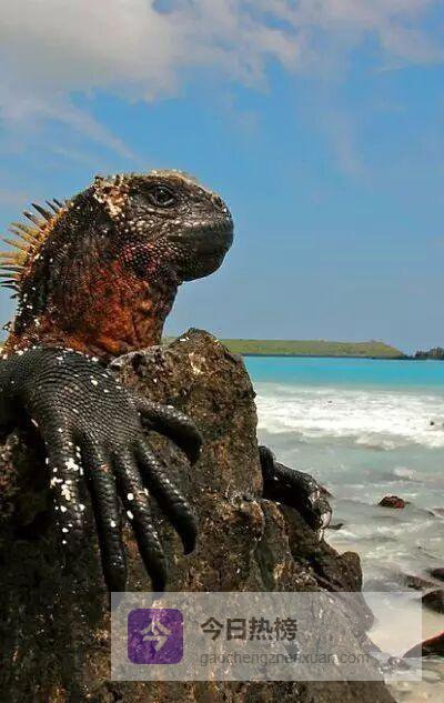 海鬣蜥,又名加拉帕戈斯海鬣蜥或钝鼻蜥, 是唯一一种把家安在科隆群岛的海鬣蜥科成员。它们能在海水里自如觅食,也能在岩石、沼泽甚至红树林里打盹。群岛的所有岛屿都是它们的领地,从南端的费尔南迪纳到北端的伊莎贝拉,都能看到它们在礁石上晒太阳的悠闲身影。