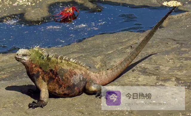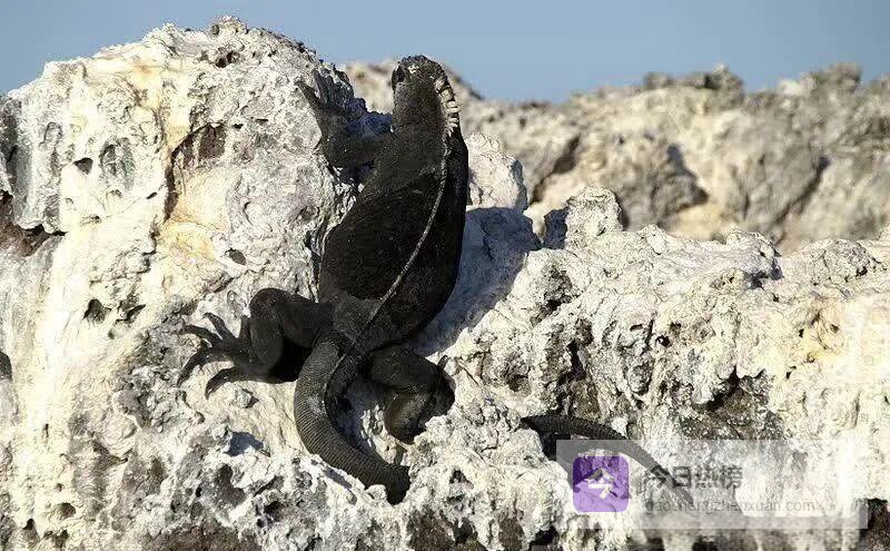 达尔文第一次登上群岛时,把海鬣蜥描述成“黑色的蜥蜴”。其实, 不同亚种、不同季节,甚至不同岛屿,它们的体色都会变化。
