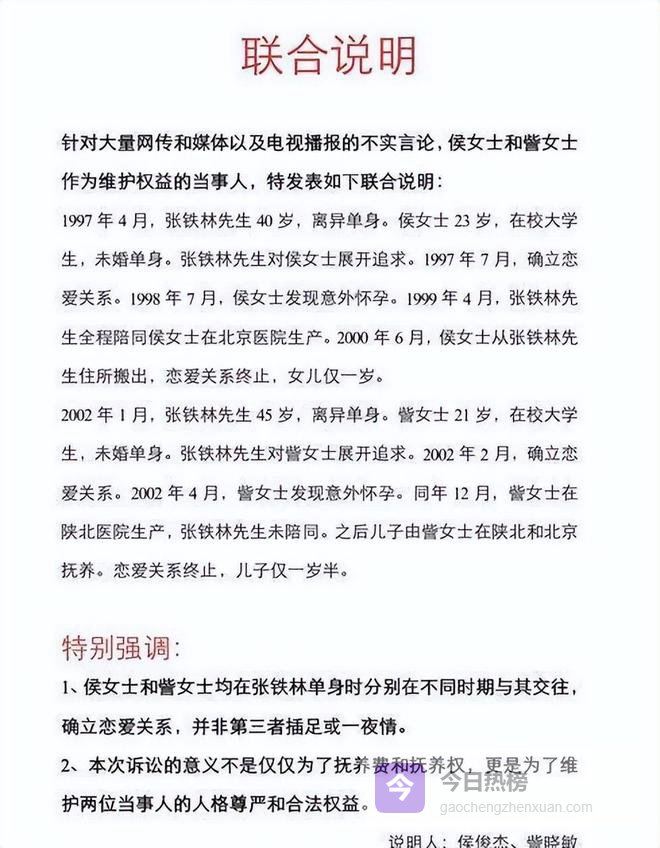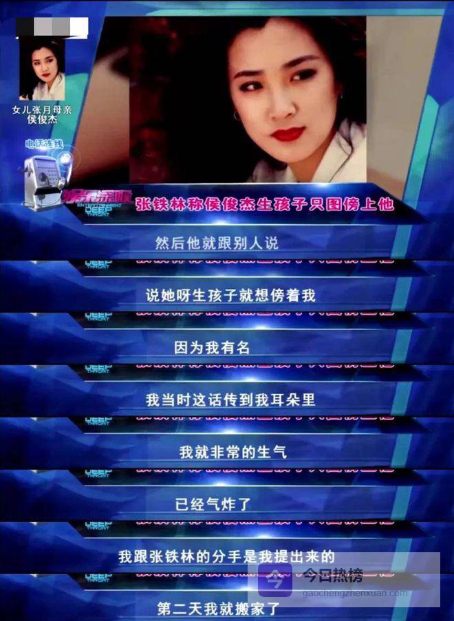 但初为人母的侯俊杰满心不舍,执意要生下这个孩子,她以为,看在孩子的份上,张铁林总会承担起父亲的责任,给她一个名分。