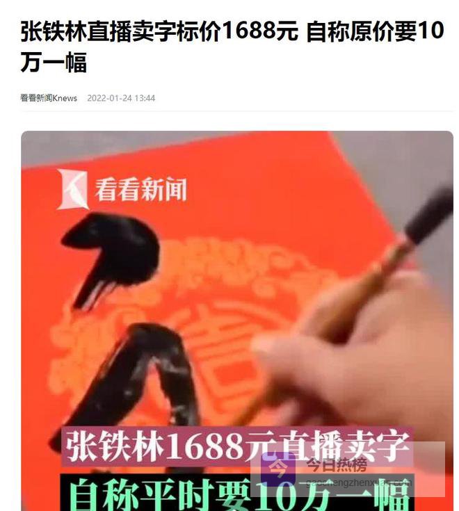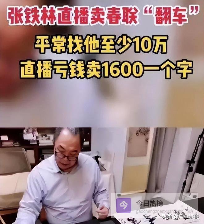 为了糊口,张铁林走起了直播带货的道路,一个福字要价1888元,对此张铁林还一本正经的告诉网友,说这是给家人们的福利价,平时一个字就要10万元。