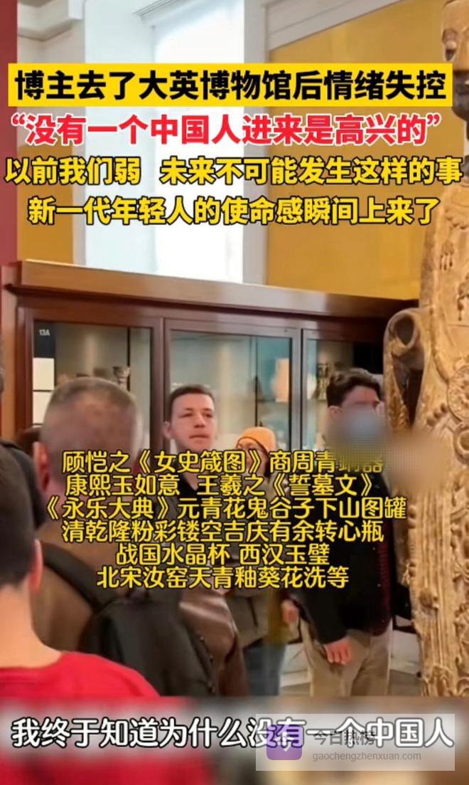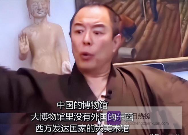 在某一场活动中,他高谈阔论怎样体现中国文化的光辉,语气痛心疾首地指责中国文化“坐井观天”,抱怨中国的博物馆里没有外国藏品,是文化缺失,还夸赞西方美术馆陈列着世界各地的珍贵文物,格局更大。这番言论一出,可想而知瞬间激怒了无数网友。