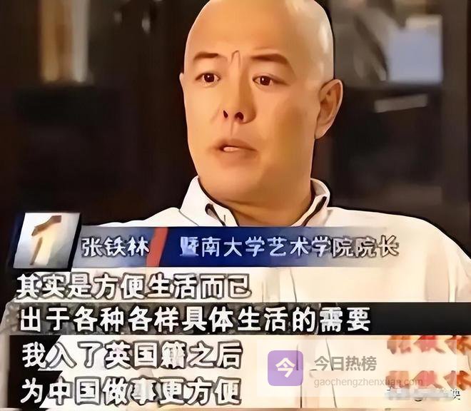 1997年,张铁林褪去了中国国籍的身份加入英国国籍,更令人不齿的是,面对外界的质疑,他还摆出一副大义凛然的姿态,多次在公开场合为自己辩解,声称加入英国国籍是为了更好地为中国办事弘扬中国的东西。