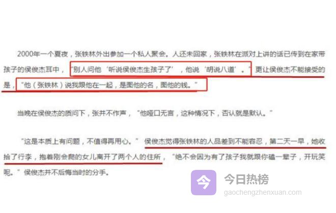 但令侯俊杰无法相信的是,张铁林的人品比他想象中的还要卑劣,他不仅不愿意承担起为人父的责任分,还在外面到处诋毁她,说她生下孩子就是为了傍上自己,看中的是他的名气和资源,话里话外将侯俊杰贬低成一个拜金女。