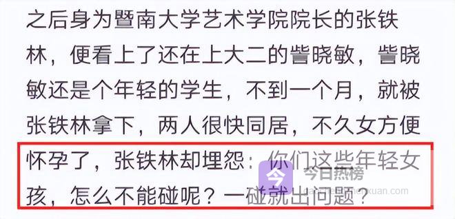 逼走侯俊杰后,张铁林丝毫没有收敛,很快就将目标瞄准了当时正在读大二的訾晓敏。