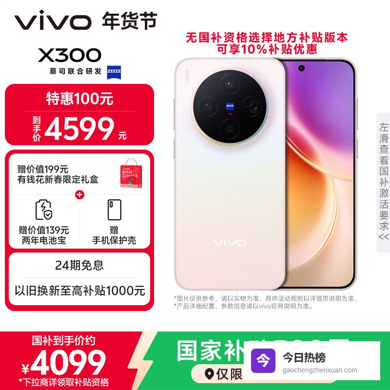 3. 拍照发烧友,一步到位怕卡顿? → 选vivo X300 (4699元)。2亿像素蔡司主摄+APO长焦组合震撼,16GB运存 + 5年流畅保障,适合追求极致影像和长久耐用的。