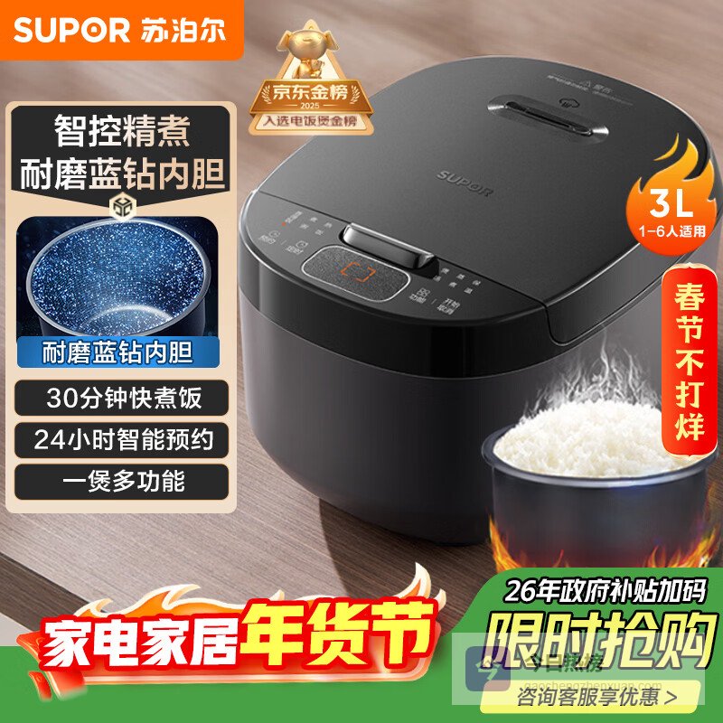 推荐入手:苏泊尔迷你电饭煲3L智能预约30FC0187