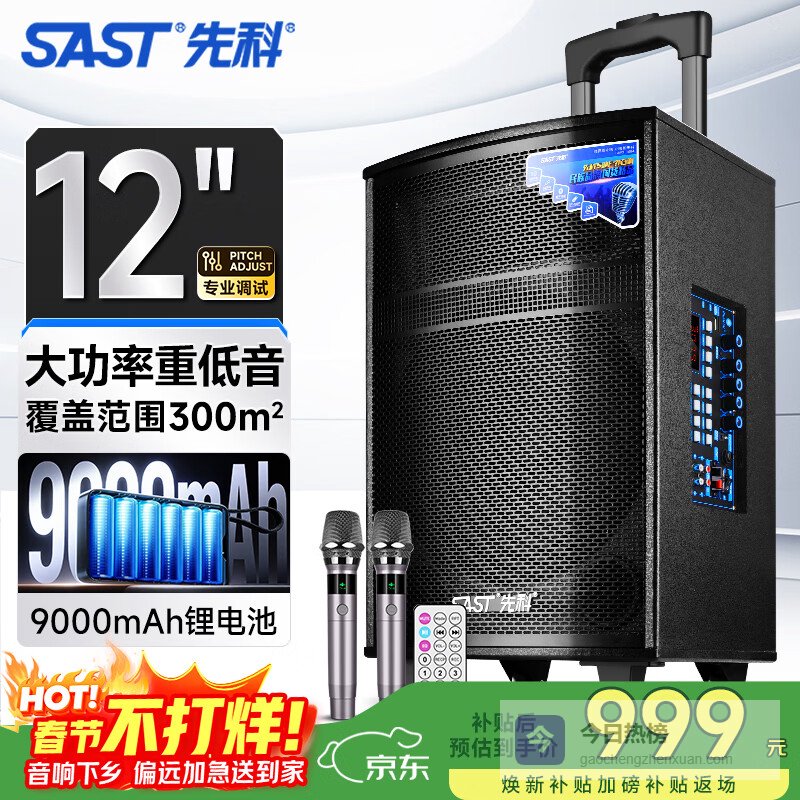 【京东自营】先科户外广场舞拉杆便携音响超大音量大功率移动蓝牙会议音箱k歌12吋重低音演讲带话筒SA-¥