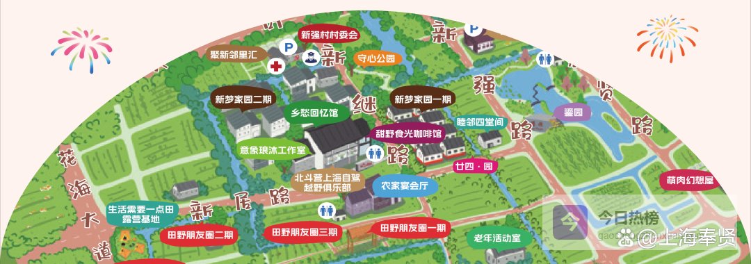 走出回忆馆,村道两旁的墙面早已变身“艺术长廊”!这是上海电机学院设计与艺术学院师生们和金汇镇新强村的校地合作结晶,田园风光、民俗文化与青春创意在墙面上肆意流淌,原本单调的角落被色彩点亮,每走几步都有新发现。
