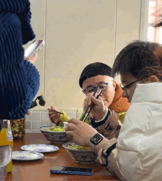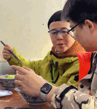 他注视着对方碗中的饭菜,嘴里不断地碎碎念着什么,似乎在指导他怎样用餐,毕竟她是地道的北京人。