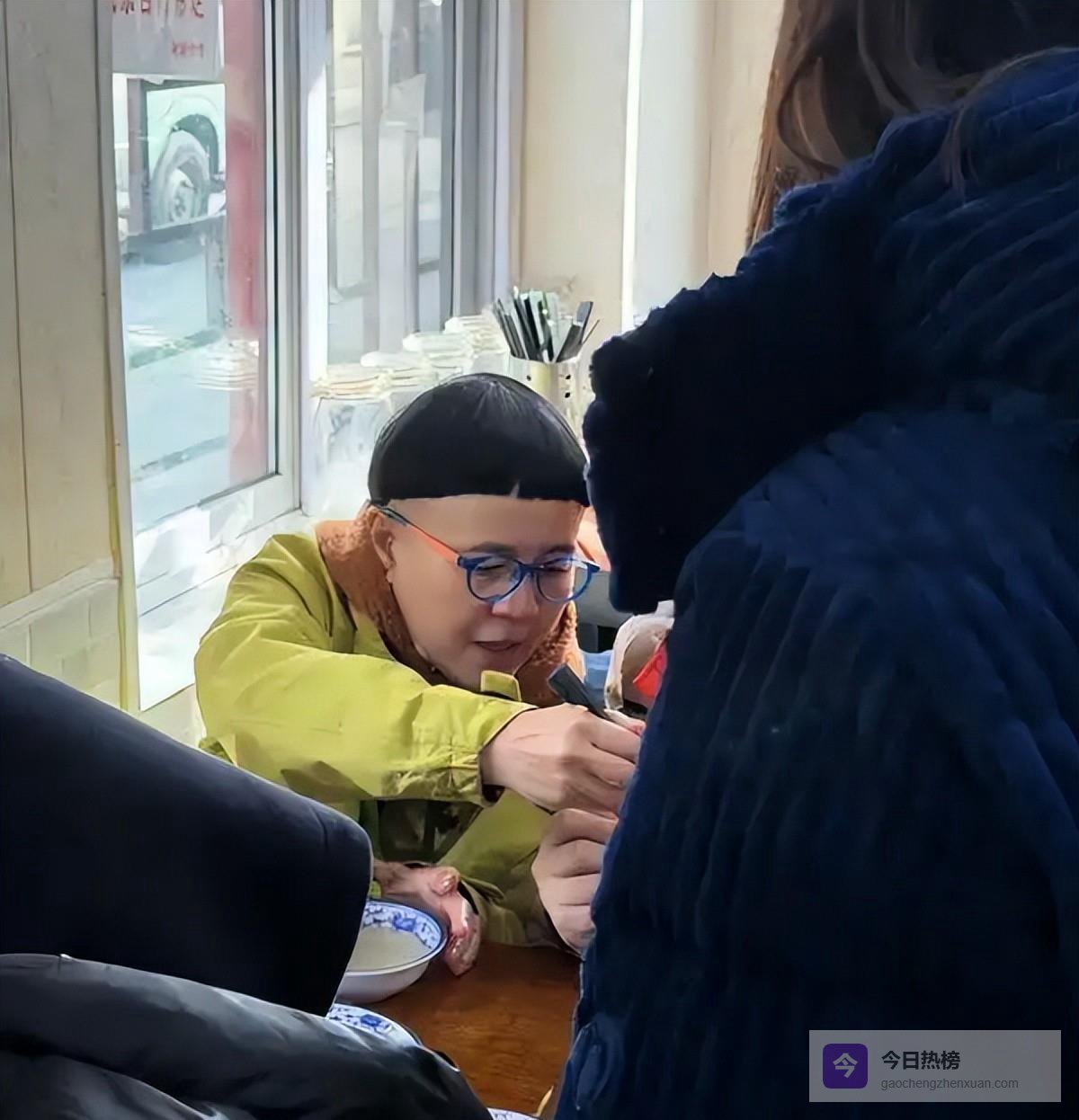 昨日,在北京一家炸酱面馆偶遇她,当时她面前放着一碗面,但身边却有许多拿着摄影器材的人在拍摄她。
