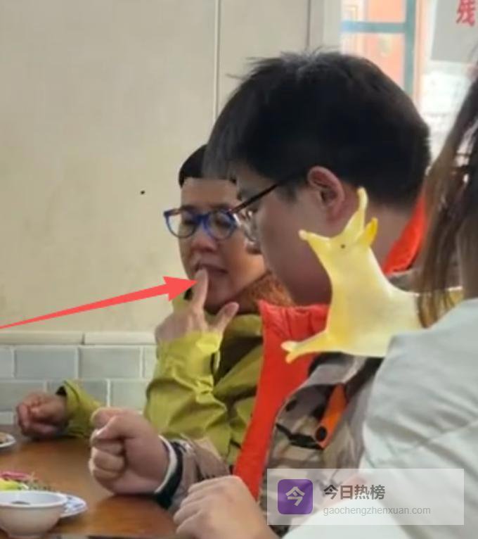 在用餐时,旁边的人似乎说了句什么,那位金龟子就撇了撇嘴,眼神中充满了不耐烦,随即将头转向了另一方向。