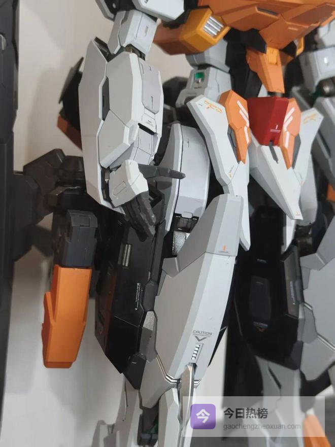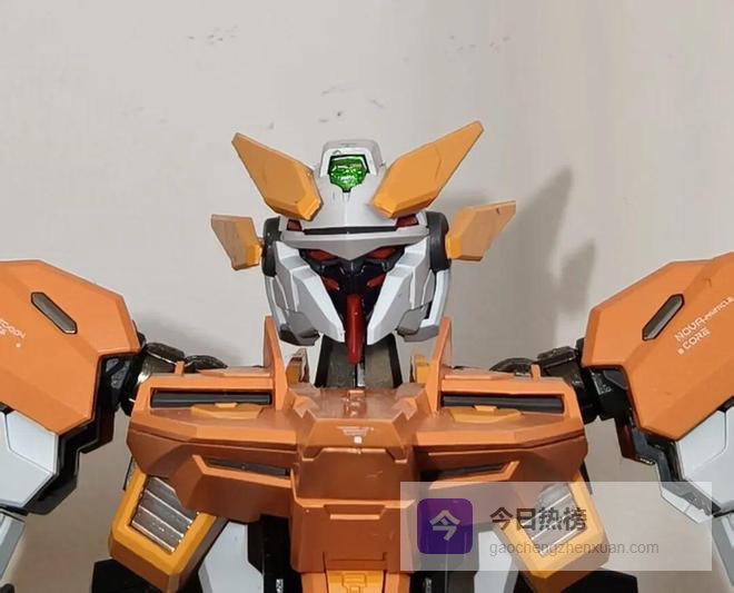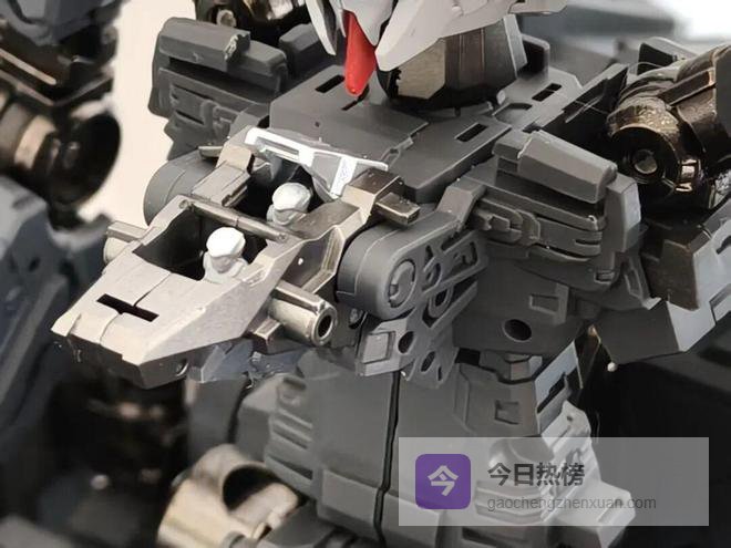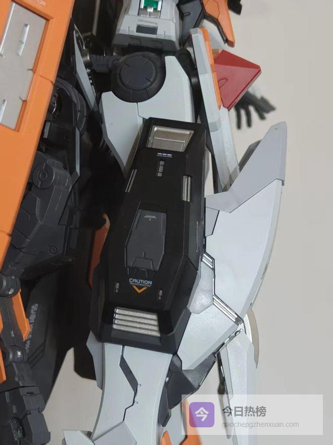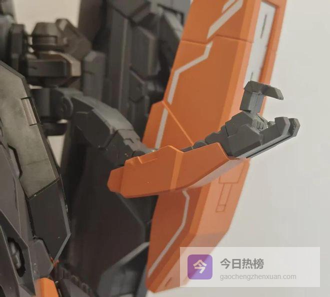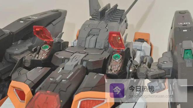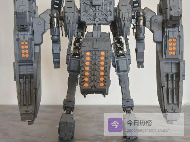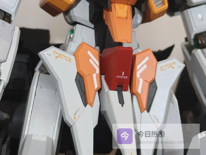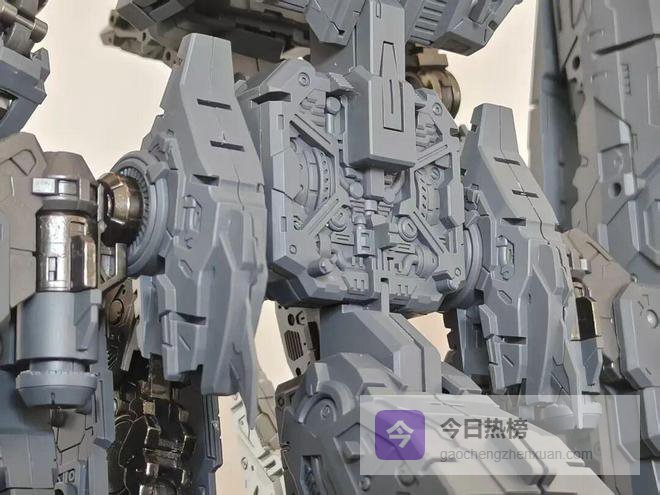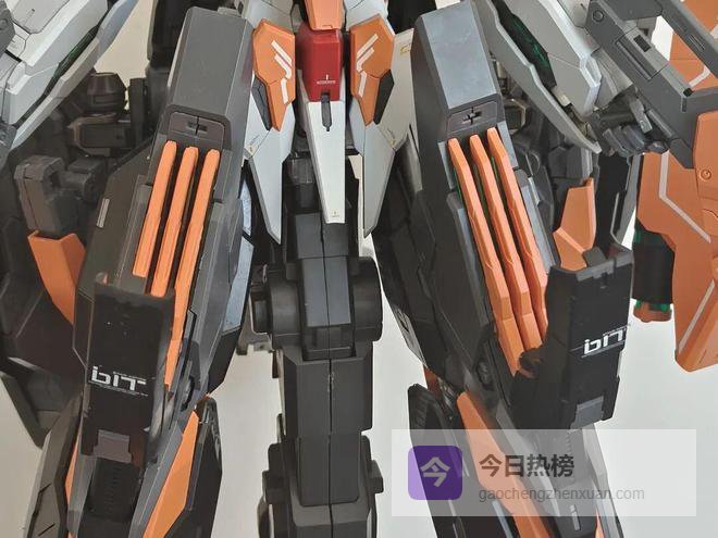来看看身上的细节。众所周知,不像真人版变形金刚可以拥有破碎扭曲的外甲和大量密密麻麻裸露在外的机械内构零件,高达的设计基本就是几个色块。做成玩具难免显得很肉。这就十分考验改模师的审美和经验。要怎样增加细节,增加多少、哪些地方的外甲要采取变形处理、身材需要进行怎样的微调,才能在不失去机设灵魂的情况下增加真实感,细节加多少才能显得既不素也不过于复杂。
