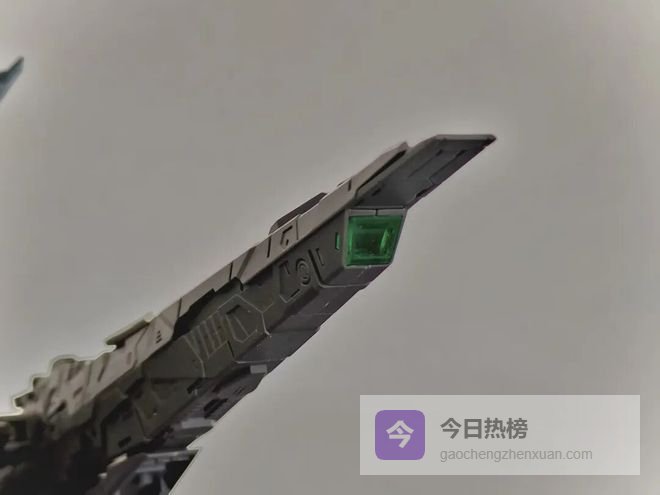 还有一个特殊玩法就是妖天使的小臂外甲可以张开,露出其中隐藏的四门小口径GN粒子加农炮。边上的细节依然丰富,还做了一条GN粒子传送带的特效件。值得一提的是这款产品的所有透明件下面都附带了银色贴纸,以增强透明件的亮度。