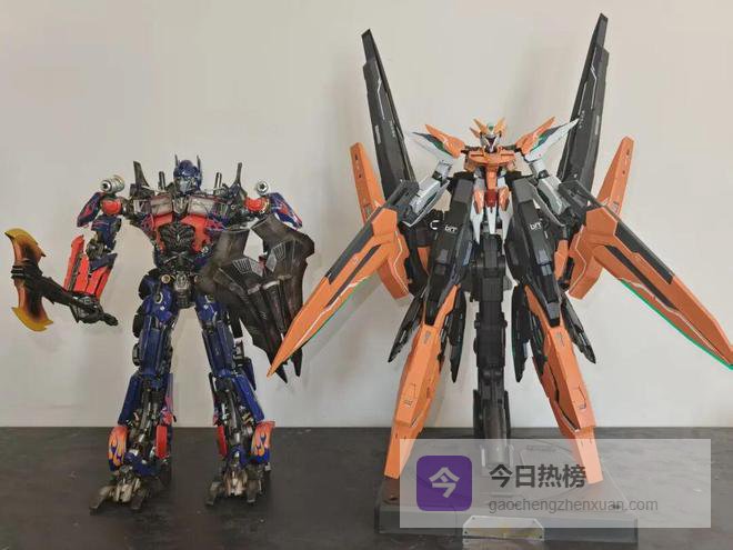 由于我没有PG尺寸的高达,故而只能先拿一个dlx擎天柱和一个大比例外传擎天柱进行对比。而妖天使在这两位面前也依然不限逊色,这样的尺寸也是妥妥的达到了柜霸级别。