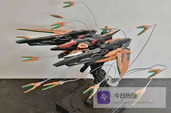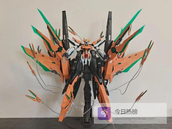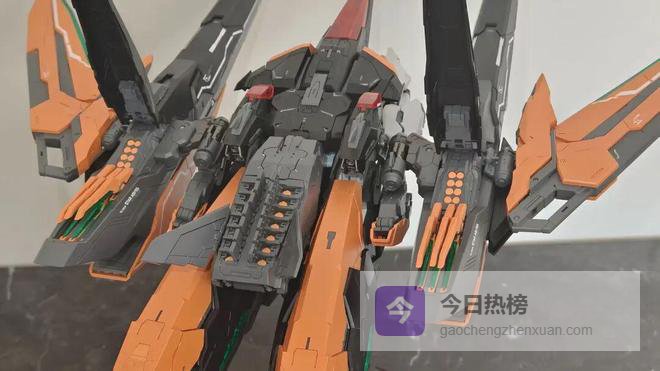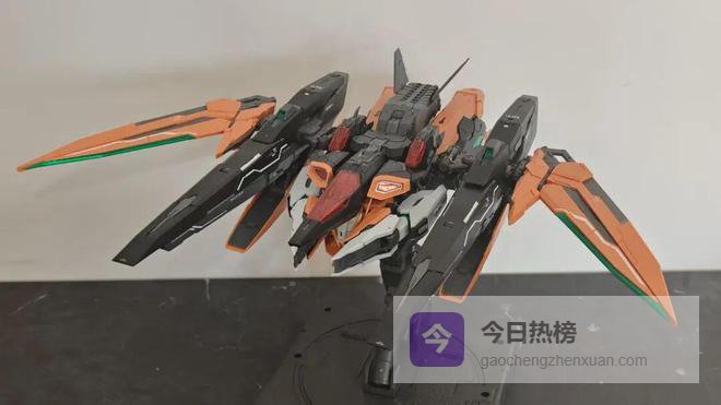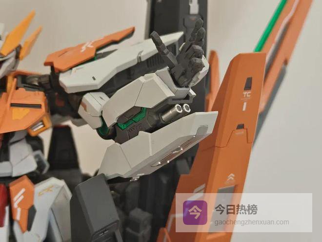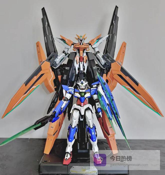 背后的GN粒子加农炮旋转至正前方,就可以还原妖天使为了给00Q开路火力全开清兵线的形态了。我真的非常喜欢这一幕,颇有一种一剑破云的霸气和潇洒。