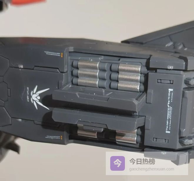 除了导弹仓上面搭载的集束导弹,导弹仓下面也挂载了弹药。在剧中妖天使打空了导弹仓上部分的所有导弹后,将导弹仓扔出去引爆造成巨量伤害,估计就是引爆的下部分隐藏导弹。玩具这里的舱盖也做了开合处理,并且导弹仓也能还原剧中进行拆卸。