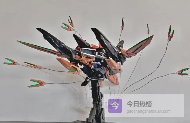 把推进器搭载后在这款妖天使的总高度来到了恐怖的40厘米,并且也彻底丧失了站立的能力,只能摆在支架上进行展示。